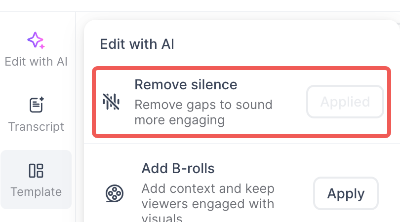 The “remove silence” option is turned off by default, as removing too many pauses can make the final video feel choppy or glitchy.